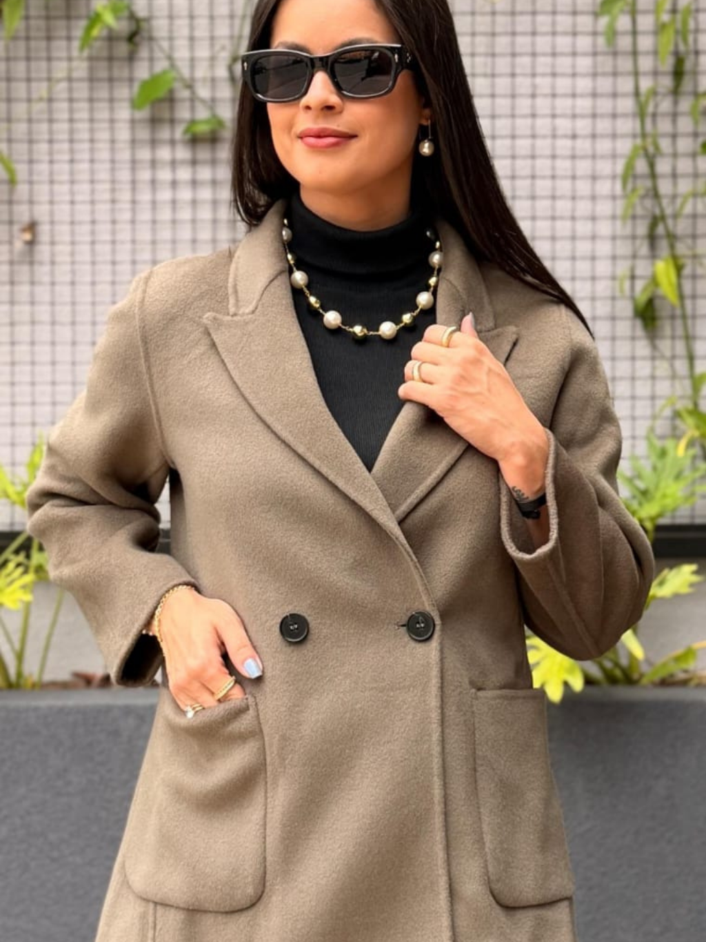 Descubra a elegância atemporal com o Casaco Longo Social da VITA® – feito especialmente para mulheres sofisticadas que valorizam conforto, estilo e qualidade. Ideal para os dias frios de outono e inverno, este casaco combina o charme clássico da lã grossa com o design moderno e minimalista do botão único e gola polo.