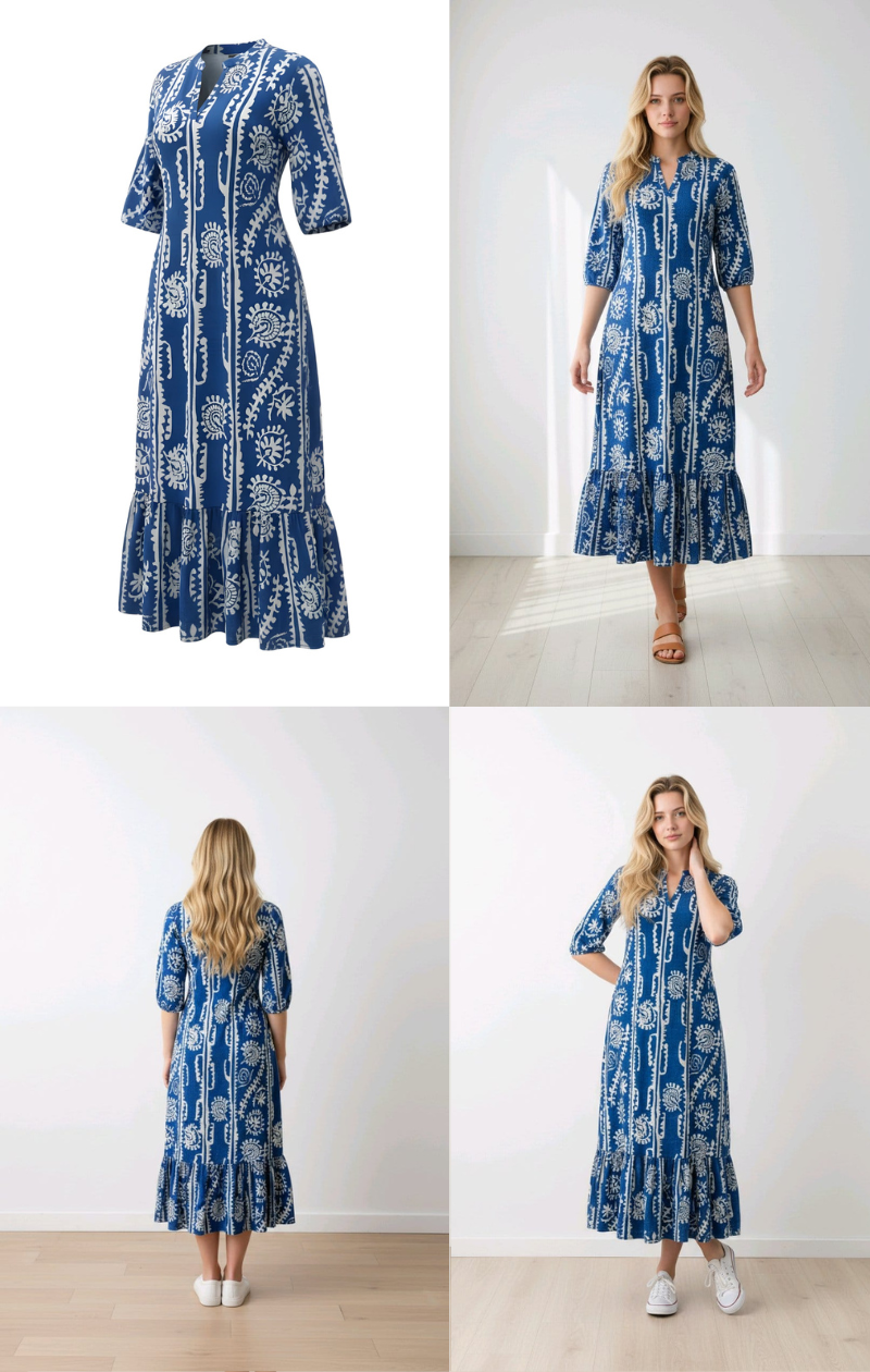 Quer dar um up no visual com conforto e estilo? Conheça o Vestido Estampado com Decote V, seu novo melhor amigo fashion! Feito em tecido macio, ele abraça o corpo com aquele charme que só um decote em V sabe dar. O corte acinturado valoriza suas curvas, do jeitinho que você gosta, seja para um passeio casual ou uma festa elegante.
